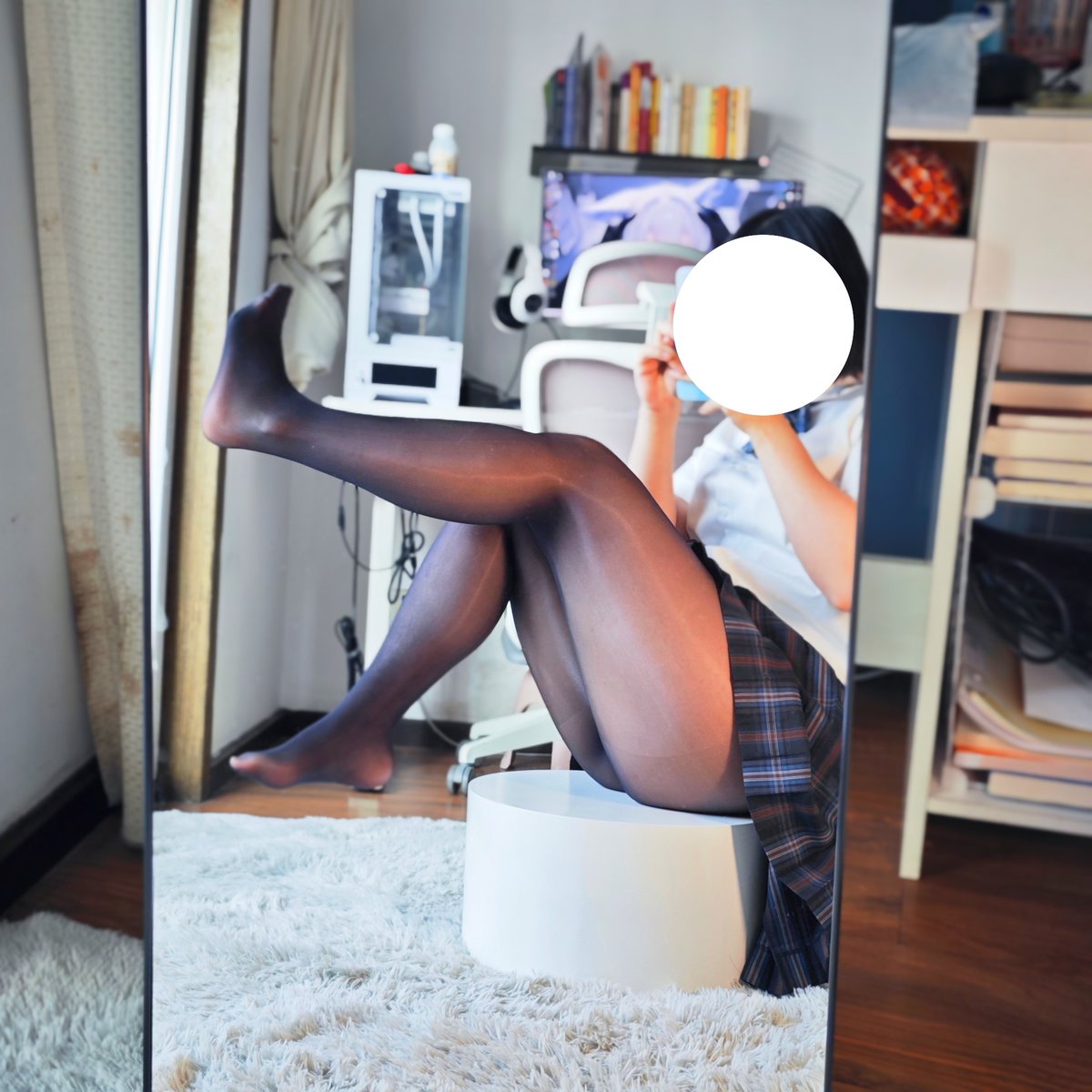 AnklesKneesThighsLong HairLong Straight Black HairKnee High SocksBlack StockingsSkirtIndoorBedroomCarpetSittingCrossed LegsMirror ViewFull BodyNatural LightShySole CreasesHigh ArchShoes Removed