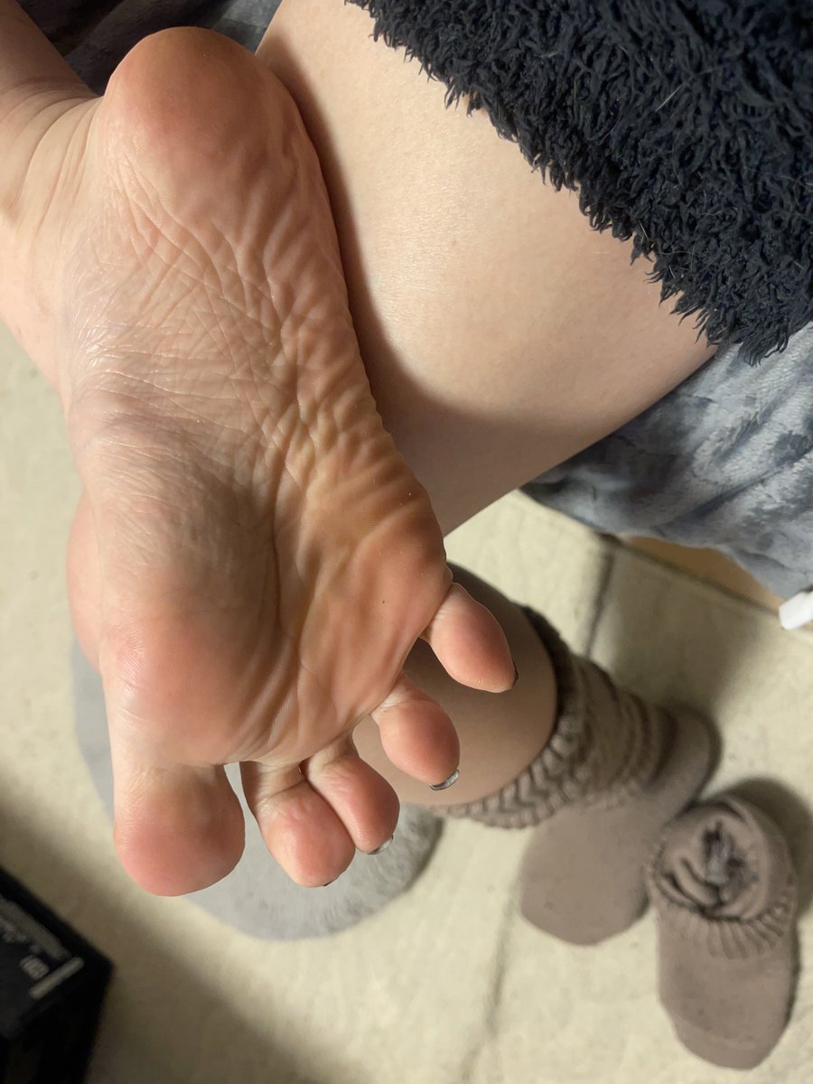 SolesToesAnklesWorn SocksBarefootIndoorBathroomSittingCrossed LegsRestingClose UpFoot FocusNatural LightRelaxedSole CreasesNude Nail ColorPainted NailsToenail PolishTop Down